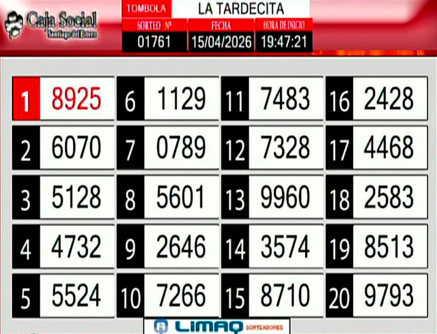 Este miércoles de abril, como todos los días, se llevó a cabo un nuevo sorteo de la Tómbola Santiagueña de la Caja Social de Santiago del Estero.