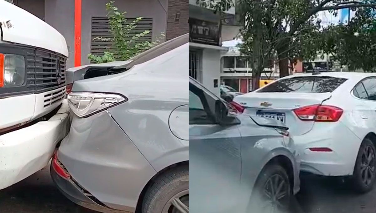 Un accidente de tránsito múltiple se registró pasada las 10 de la mañana sobre avenida Libertad, antes de su intersección con avenida Colón, donde tres vehículos protagonizaron un fuerte choque en cadena.