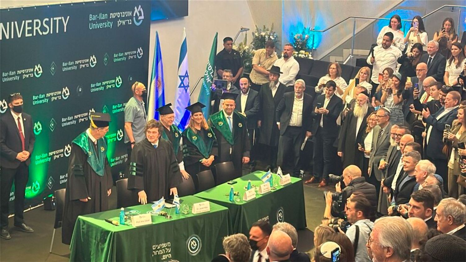 En su primera actividad de hoy, Milei recibió un doctorado Honoris Causa de la Universidad de Bar-Ilan, cuando faltan pocas horas para que venza la tregua pactada entre Washington y Teherán.