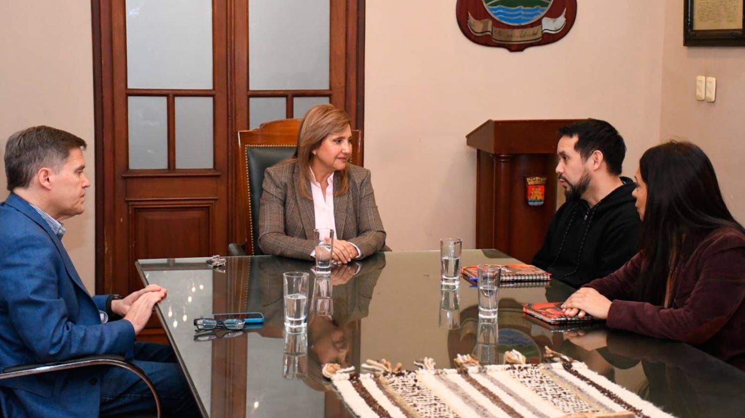 La intendente, Ing. Norma Fuentes, recibió en el salón de acuerdos del palacio municipal la visita de miembros de la comunidad del Oratorio Don Bosco, encabezada por el padre Alex Arena.