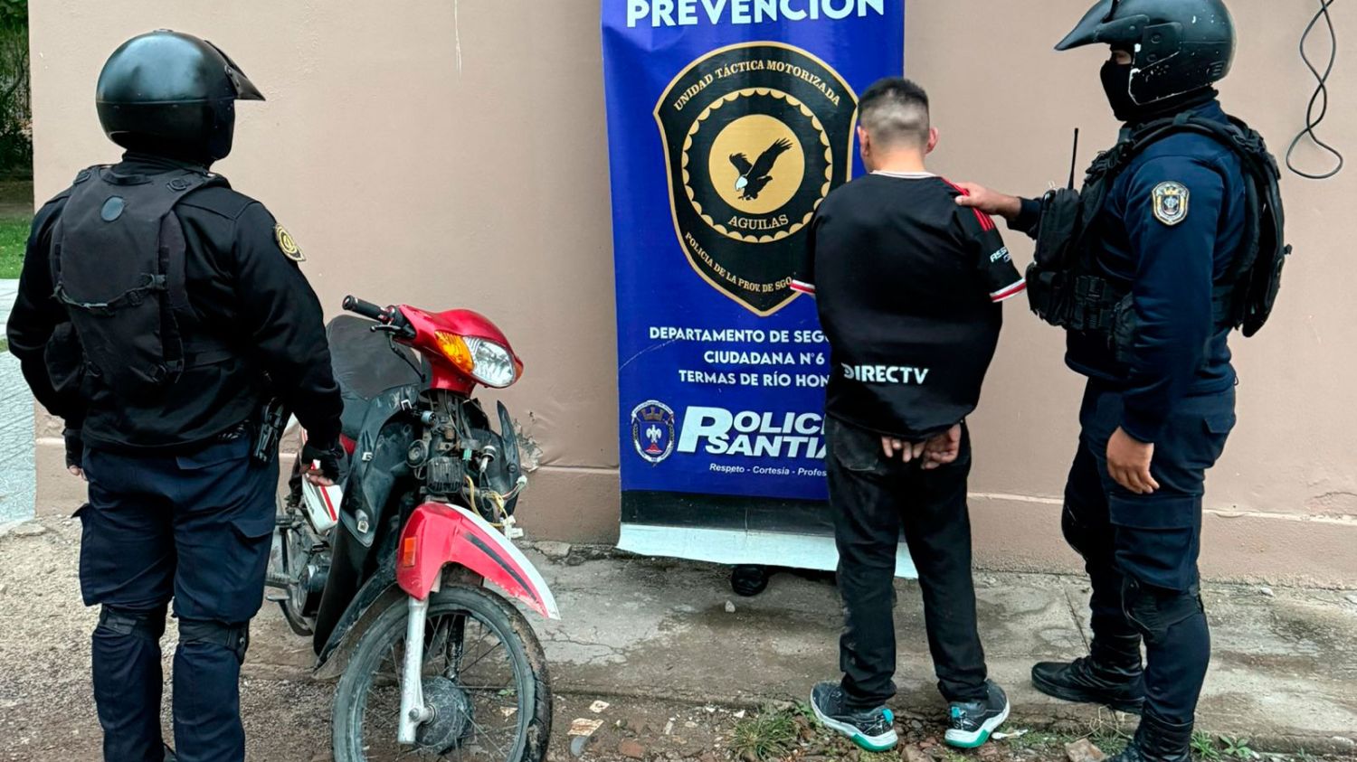 Tras el alerta emitido por la Sala de Monitoreo, personal de la Unidad Táctica Motorizada (UTM), dependiente de la División Prevención Departamental Nº 6, inició un operativo de búsqueda al advertir la presencia de un hombre que trasladaba una moto en actitud sospechosa.