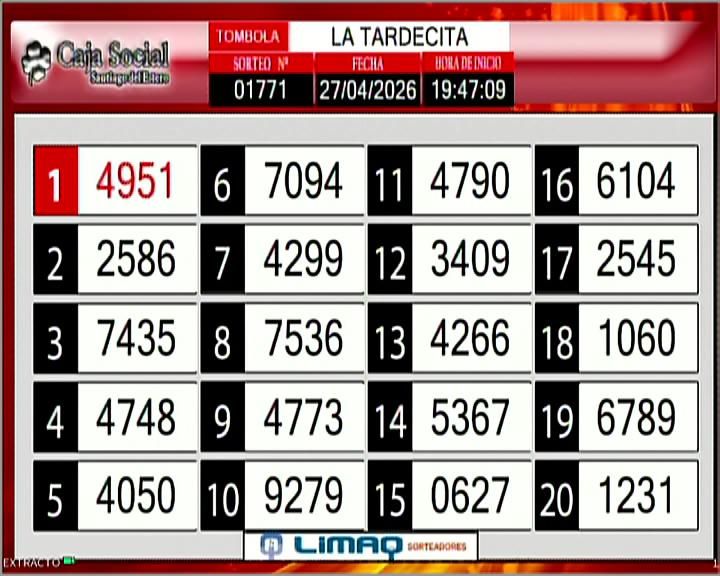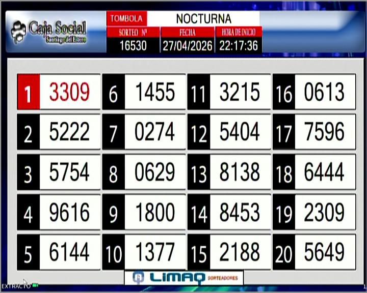 Este lunes 27 de abril, como todos los días, se llevó a cabo un nuevo sorteo de la Tómbola Santiagueña de la Caja Social de Santiago del Estero.
